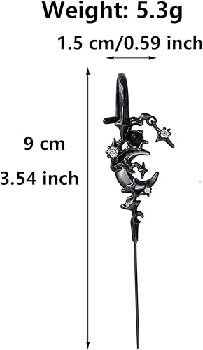 - Shape: Straight ear cuff with crescent and thorn motif