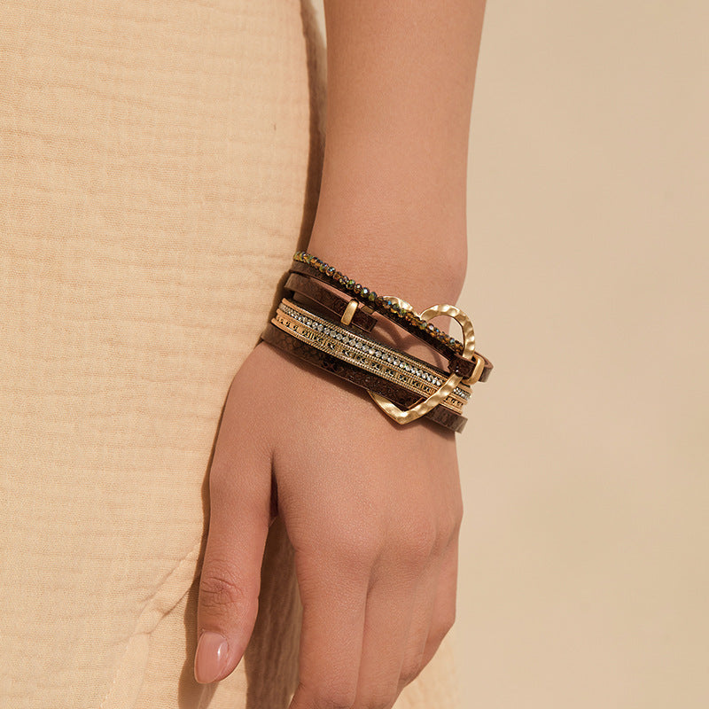 - Design: Multi-layered bracelet with mixed textures & shimmer details